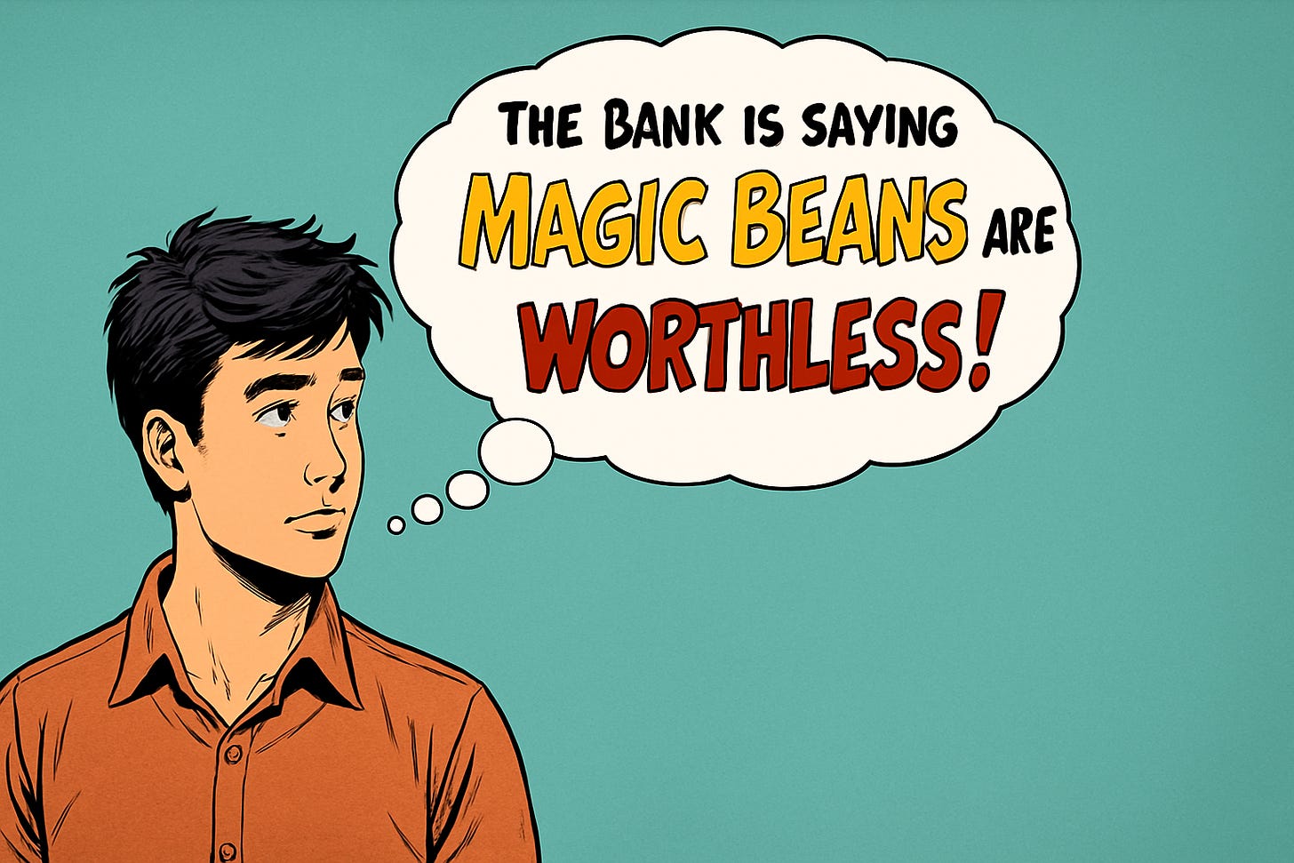 Magic Beans as an Investment Strategy. Our boys have moved out. We stay connected via text. Their responses aren’t all that rewarding. Yup. Nah. Sweet. (I’m actually starting to feel cheated by all that money we invested in Baby Einstein.) Perhaps I shouldn’t complain. Because the multi-word texts I receive from them are almost never good. (How much collision insurance do we have? Where do we keep the fire extinguisher? I bought some magic beans and now the guy at the bank is telling me they’re worthless.)